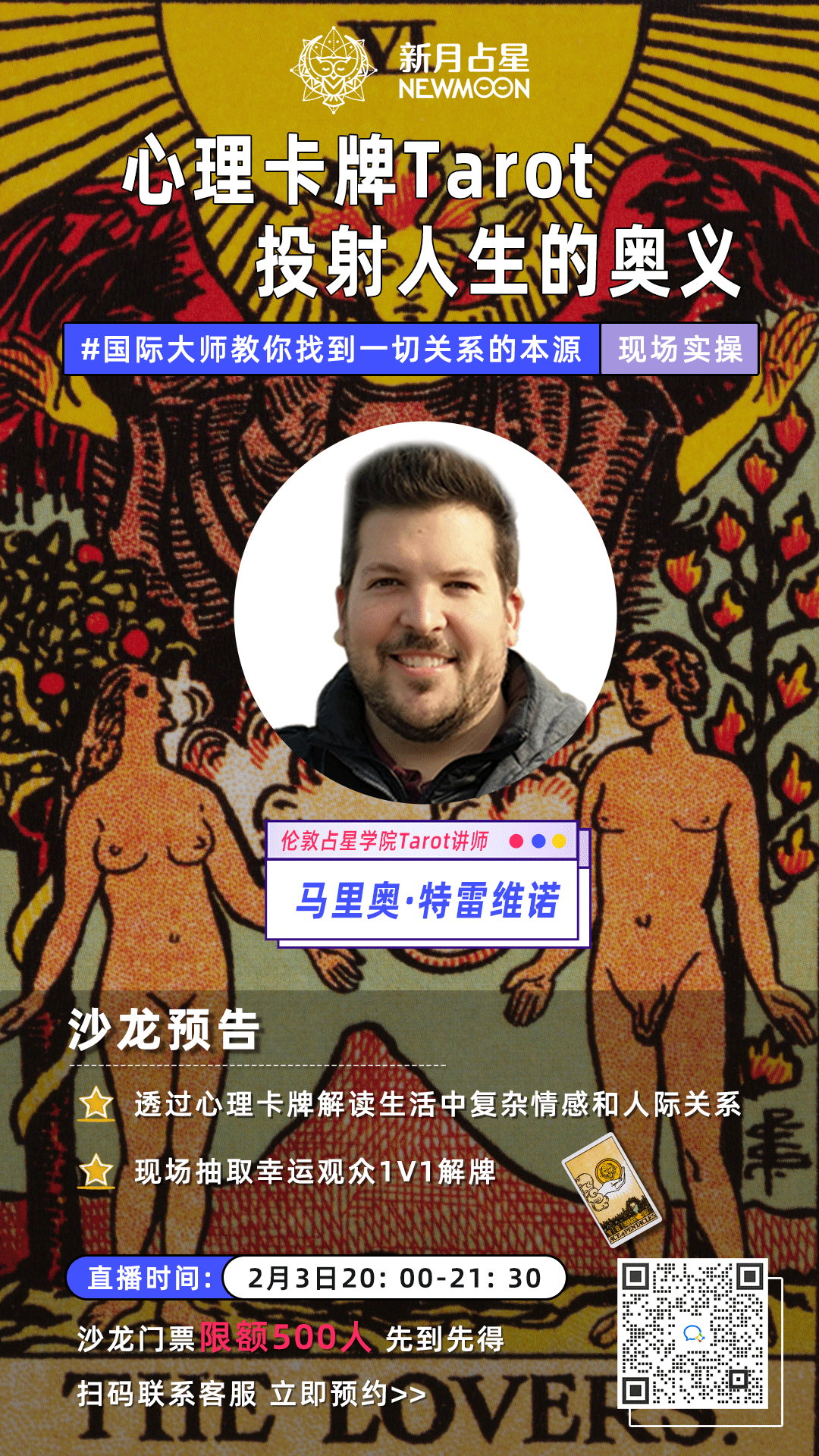 那如何才能破解牌面上的那些“神奇密码”,2月3日,伦敦占星学院心理卡牌导师马里奥.特雷维诺将为大家通过ZOOM平台为大家一场关于心理卡牌与人生奥义的深度沙龙。
