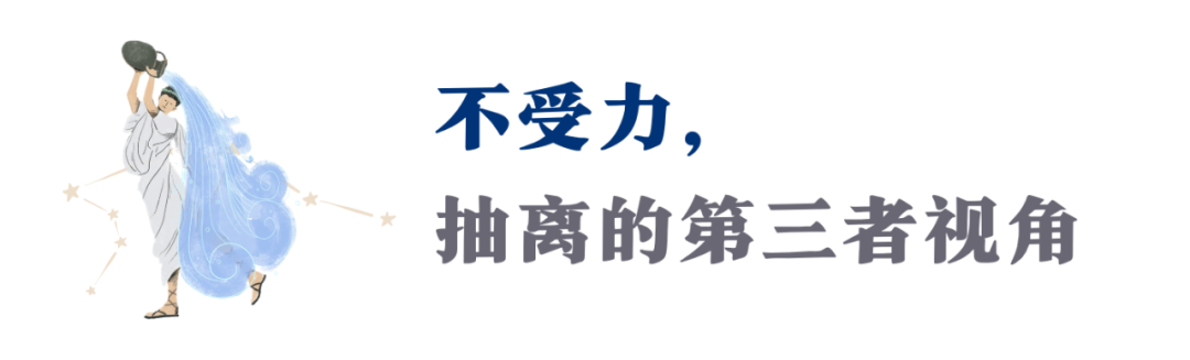 现如今,作为一个命主星落水瓶座合相天王星的水瓶人,我想世界仍然是需要“力”的,并且我们不该为了形式主义自由,一味挥霍水瓶座的能量,为了反抗而反抗并不可取。不如静下来,在外力中品味“内力”,在别人的定律中生出自己的定律,进而学会掌控自身的力量,才能实现真正的自由。