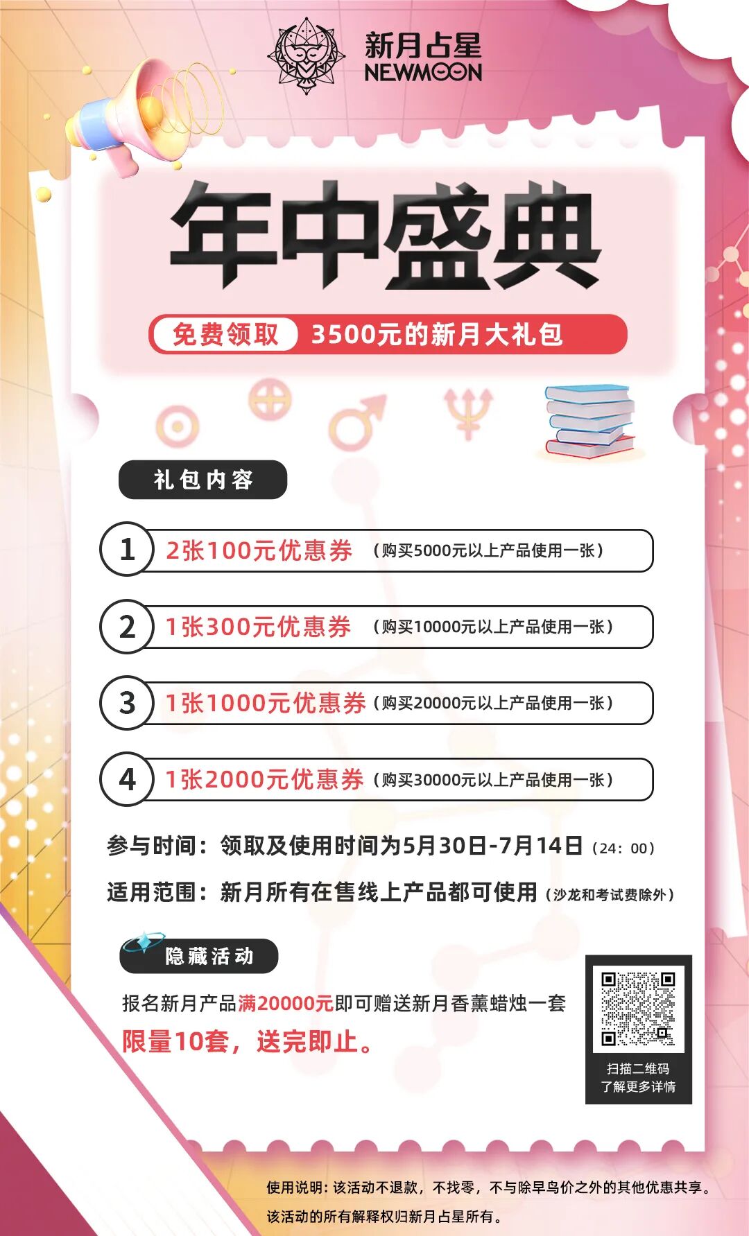 快来扫描下方海报二维码或添加新月客服微信