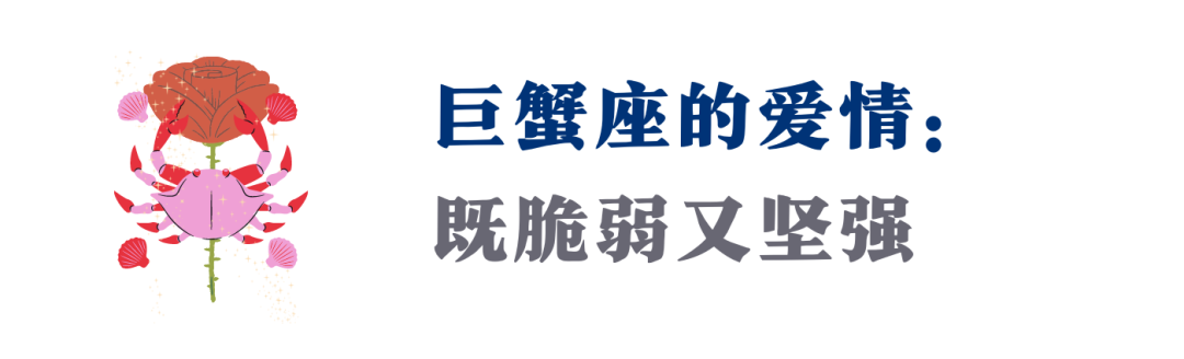 不论巨蟹座在爱情中扮演的是母亲还是孩子,又或者两者兼有,他们需要持续地得到情感以及肯定。如果你有一颗足够温暖的心,并且能走进他们的内在去理解生活,那么这个在脆弱和坚强之间来回切换的梦想家将会给你带来极大的惊喜。