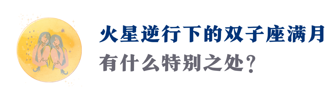 而本次双子座满月除双子-射手能量参与之外,还有一个关键性配置表现极为突出,那就是逆行在双子座的火星。