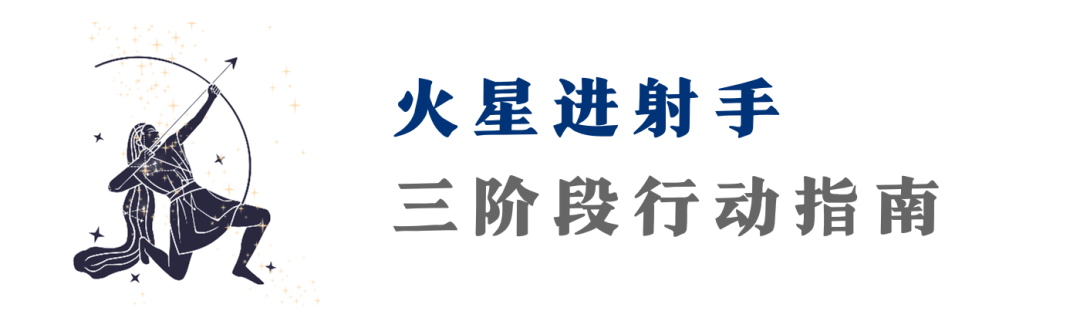 第一阶段:11月24日至12月15日 11月24日火星刚进射手时,作为晨星的火星距离太阳仅有2度的距离。 合相太阳的火星代表着很强的执行力,所以我们在火星换座前期做事的速度可能会变得非常快。但由于被太阳的光芒遮蔽,在这段时间,火星的作用和表现方式可能会不太容易被我们看到。我们可能会以为是太阳带给了我们行动的力量,但其实是火星在帮助我们执行、推动。 这一点会随着时间的推移而愈发显露出来。因为随着接下来火星距离太阳逐渐变远,我们的行动力事实上也会逐渐减弱。 因此,如果我们希望能快速处理一些事项或任务,那便很适合在12月15日之前开展。在这段时间我们做事的执行力很强,可能不需要太多理论、依据,或别人来教我们怎么做。 可能我们只凭感觉便能相对顺利,得心应手地做出处理。