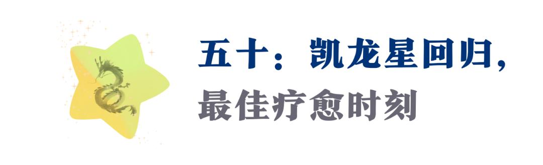 凯龙星一生当中仅回归一次,大约发生在我们的49岁到50岁之间,持续时间约为6个月。除非你活到了100岁,那时会发生第二次凯龙星回归,接近我们告别尘世的时间点。