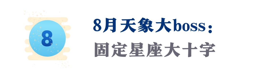 土星、天王星、南北交在“四方形”格局中三缺一,听闻此讯的群星陆续跟上,固定星座大十字频现,横亘于整个8月,这该是boss级的天象了。